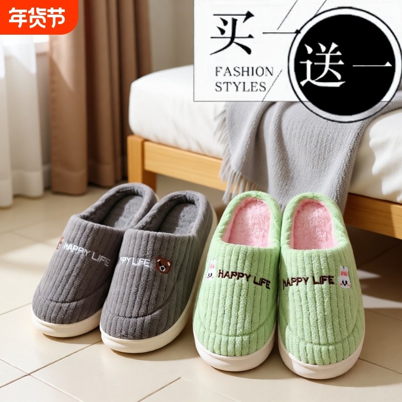 棉拖鞋室内家居保暖秋冬季情侣家用可爱厚底防滑居家男士毛毛