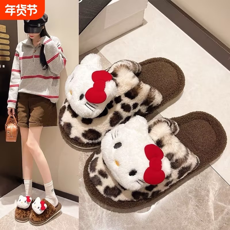 哈喽kt居家棉拖鞋秋冬季可爱毛毛拖鞋毛绒防滑防臭室内20