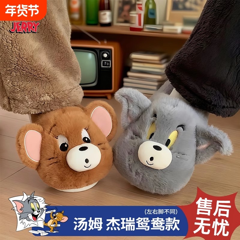 猫和老鼠情侣棉拖鞋汤姆杰瑞男女冬季可爱保暖毛毛鞋居家棉室