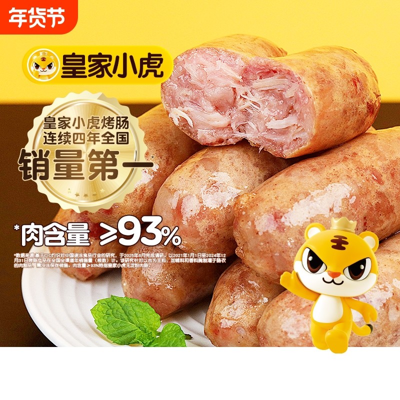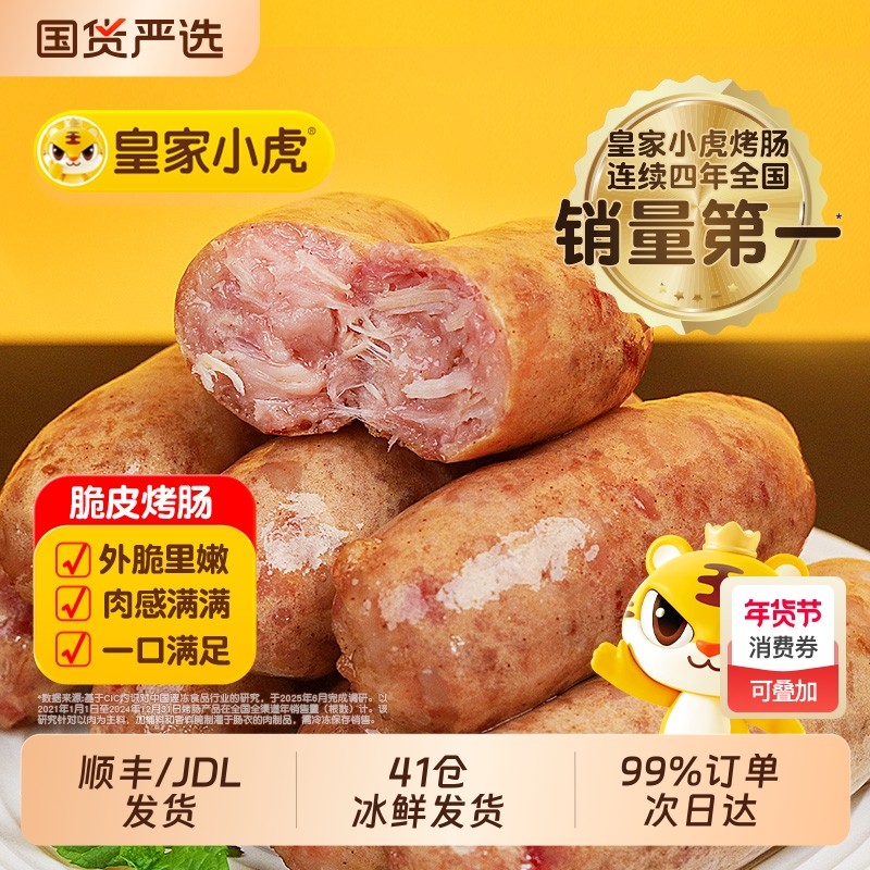 皇家小虎烤肠火山石脆皮纯肉香肠热狗空气炸锅食材地道肉肠黑