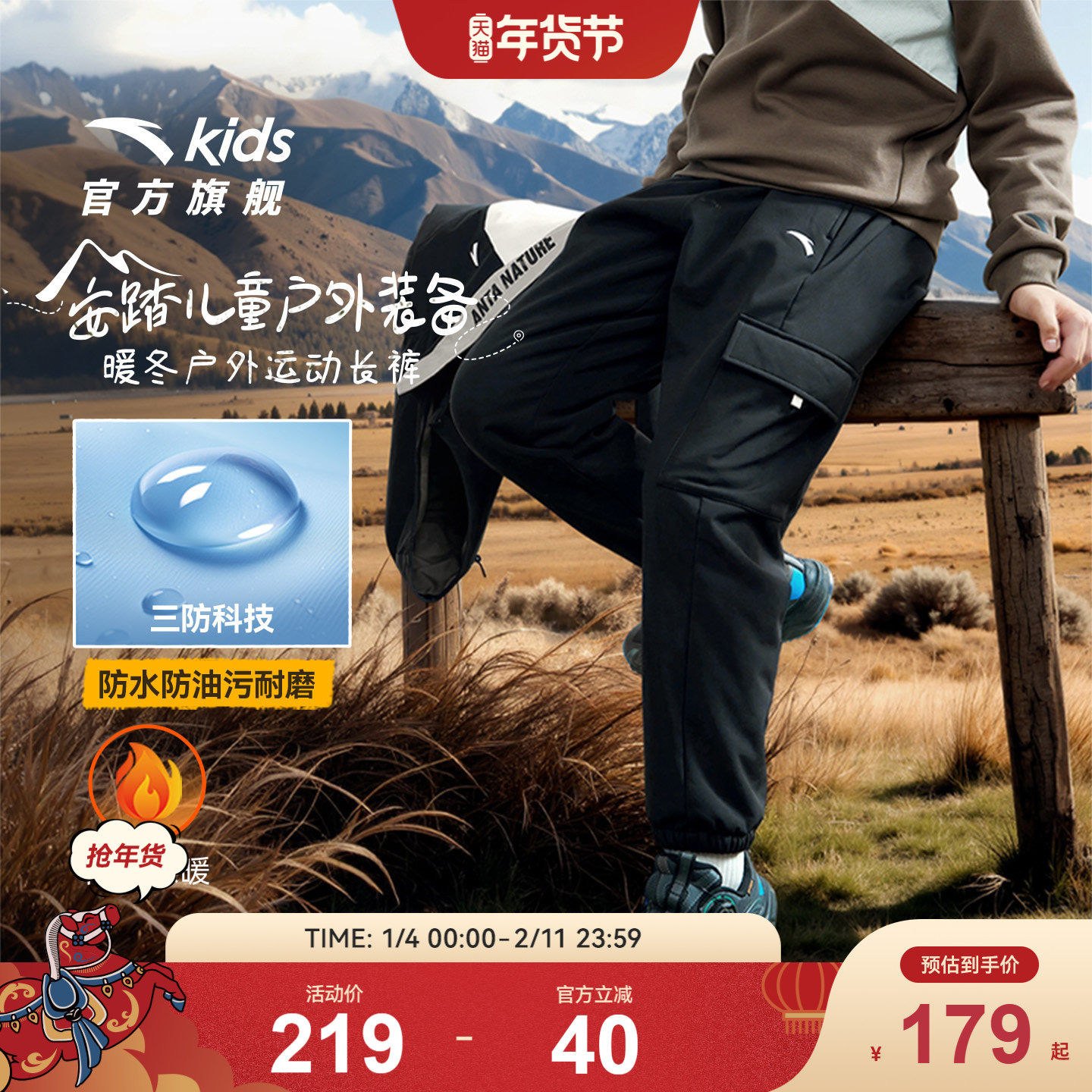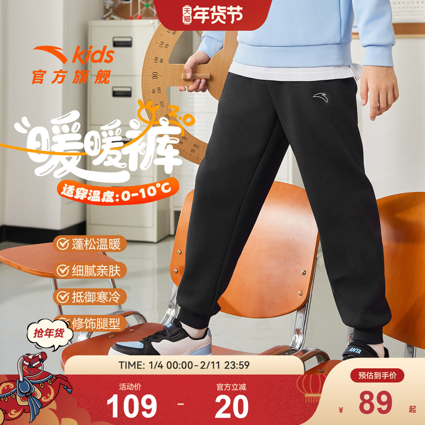 安踏童装男童加绒裤子卫裤秋冬款2025冬季新款儿童棉裤长