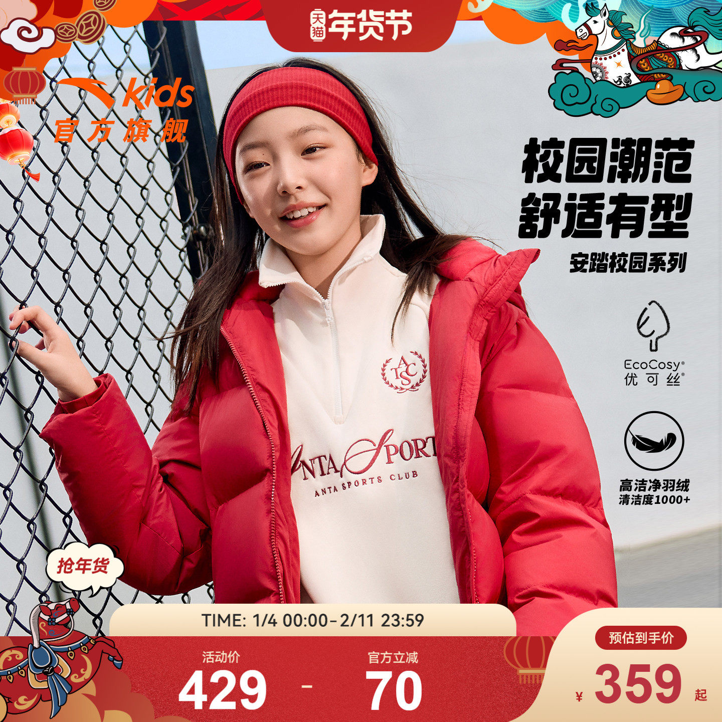 ATSC休闲系列安踏儿童女童羽绒服2025冬保暖防泼水面