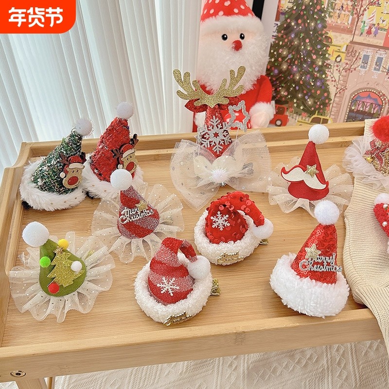 圣诞节头饰发夹帽夹麋鹿角圣诞老人头箍装饰森系发卡对夹子发