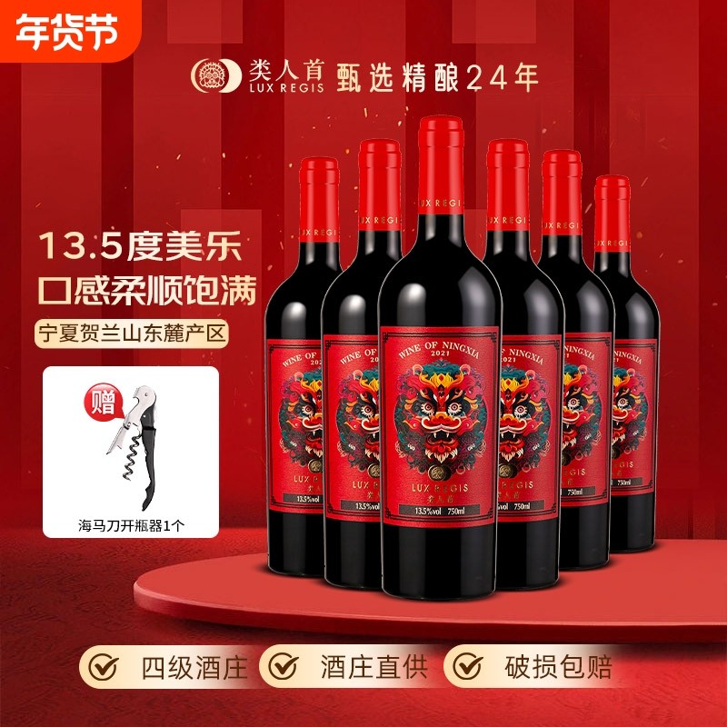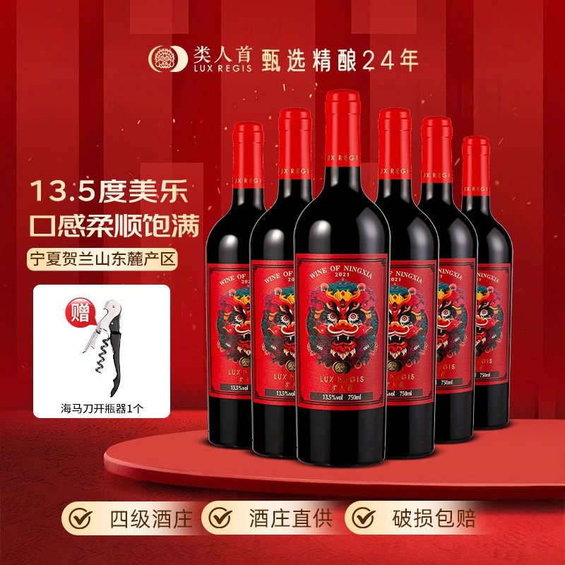 类人首 宁夏红酒贺兰山东麓龙腾美乐橡木桶干红葡萄酒750
