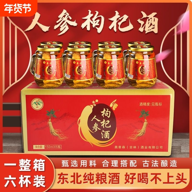 白圣山人参枸杞酒正品官方旗舰店52度24瓶过年礼盒装小瓶
