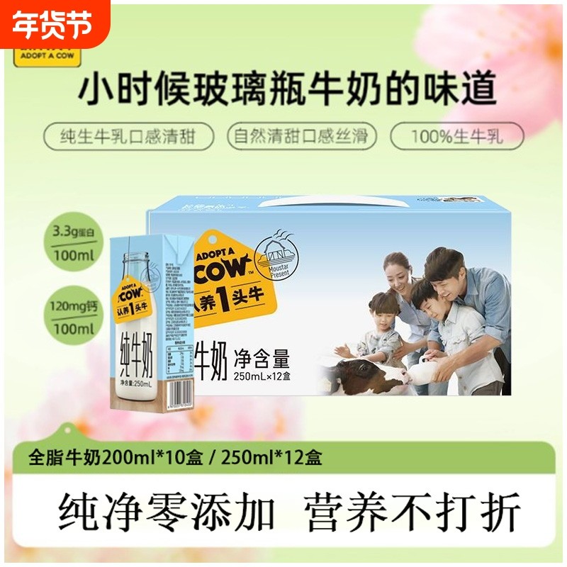 认养牧场鲜知纯牛奶200ml*6盒学生青少年儿童纯牛奶营