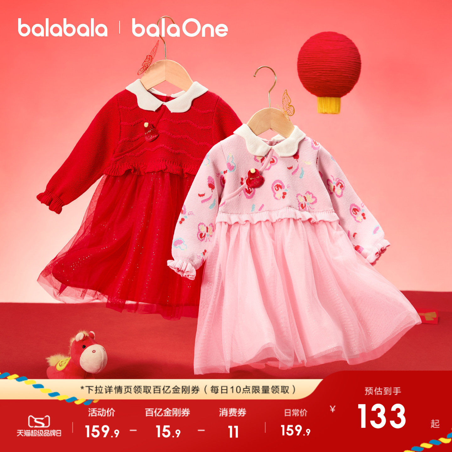 巴拉巴拉童装女童连衣裙2026新秋冬装网纱儿童裙子红色拜