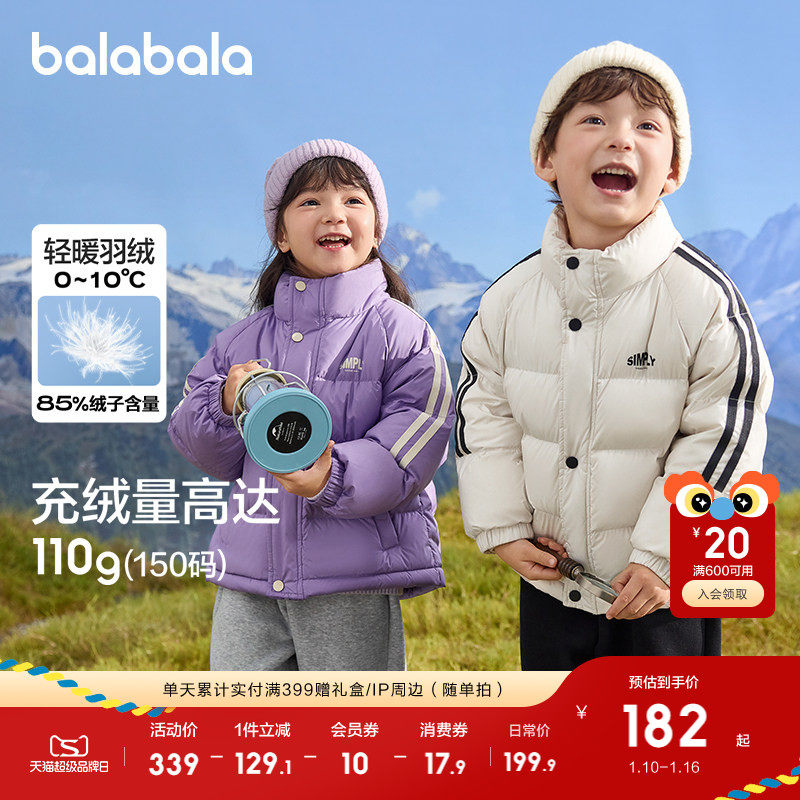 【商场同款】巴拉巴拉童装儿童轻薄羽绒服男女童2025新款