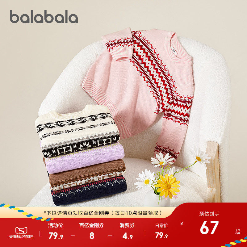 巴拉巴拉童装儿童毛衣男童女童亲子纯棉内搭秋冬装提花针织衫