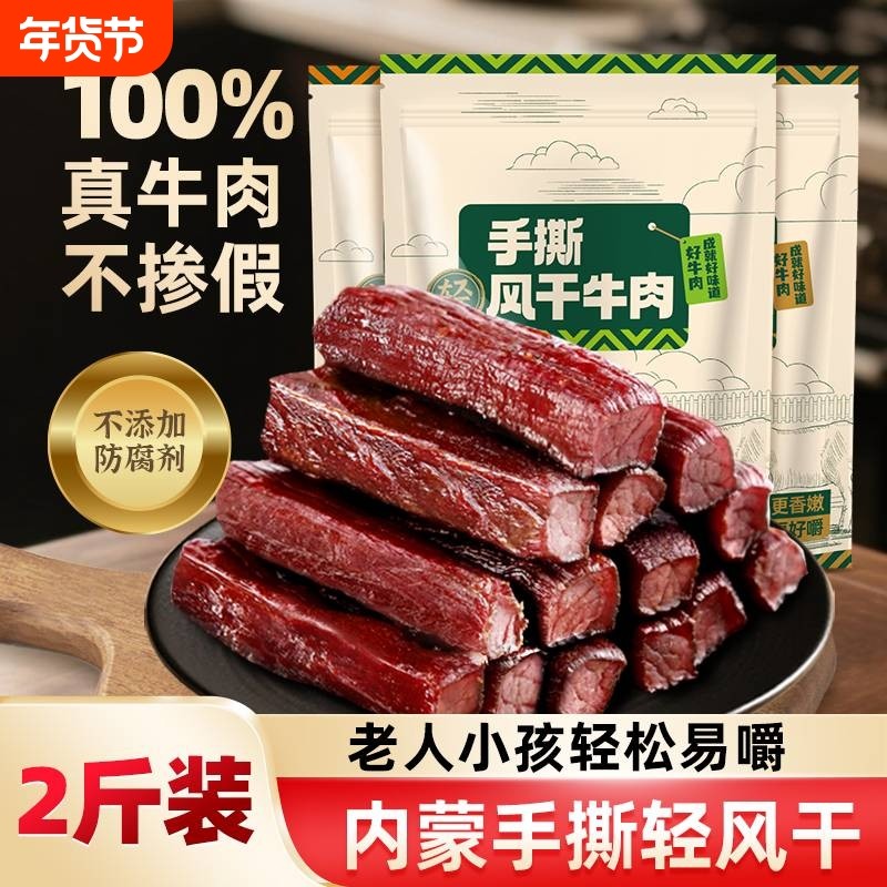手撕风干肉内蒙古特产内蒙小零食肉干风干牛肉干真空小牛健康