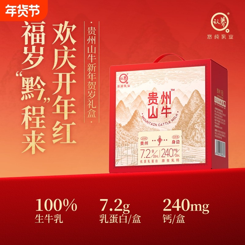认养贵州山牛纯牛奶200ml*16盒3.6g学生儿童全脂