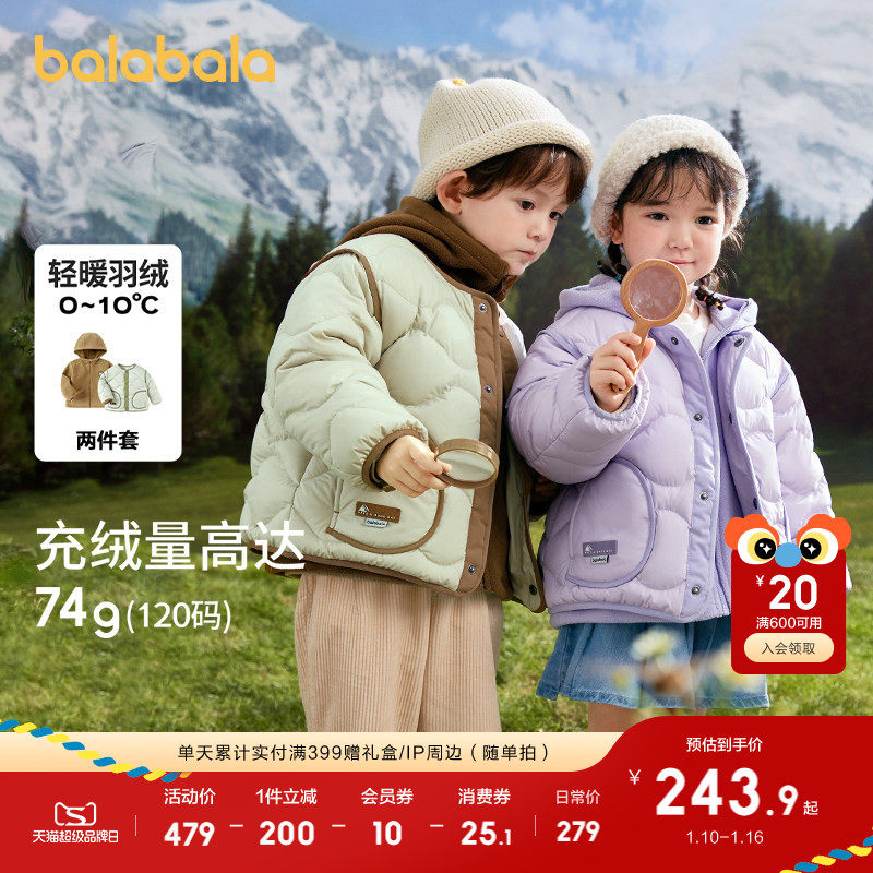 巴拉巴拉童装儿童羽绒服男童女童冬宝宝外套轻薄摇粒绒两件套