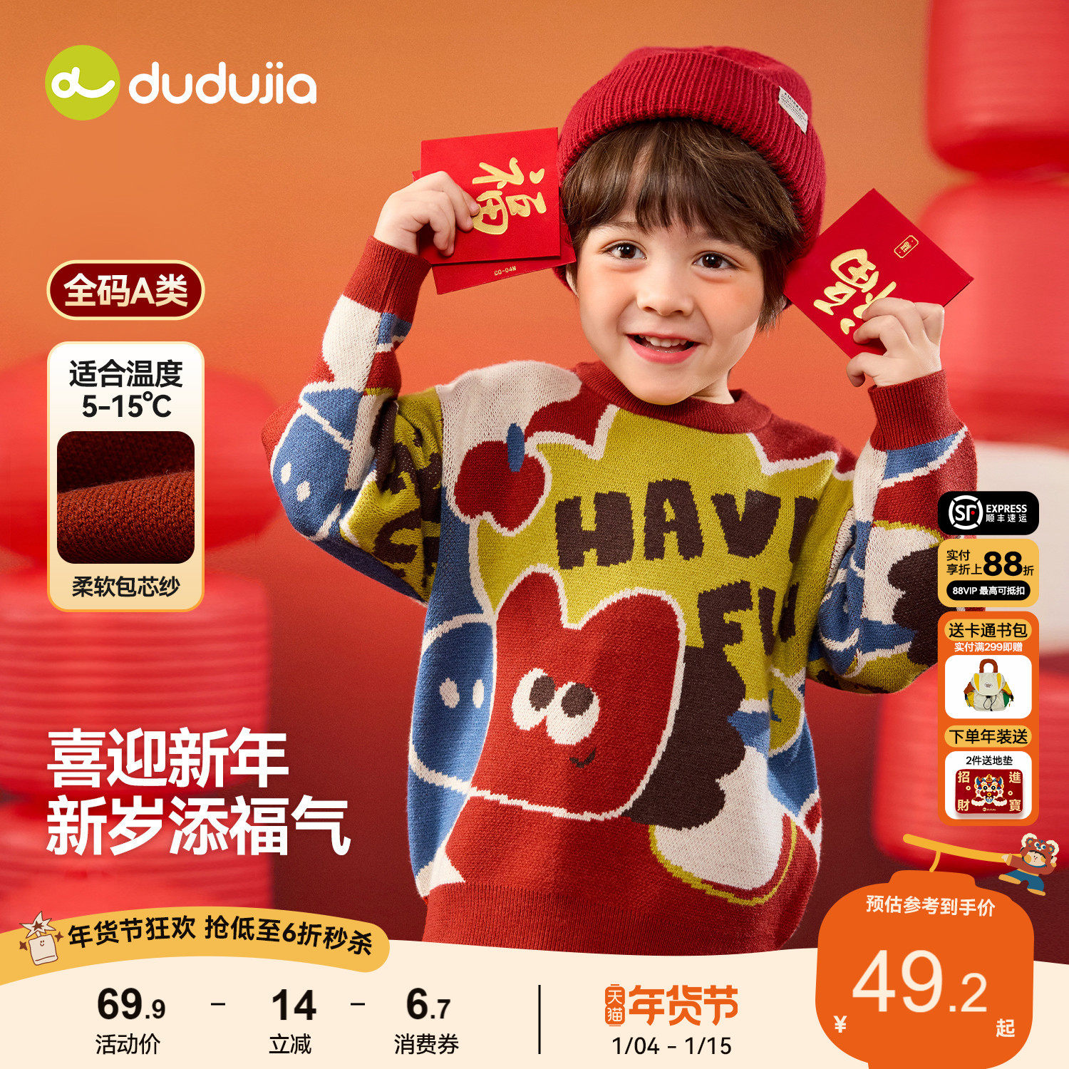 嘟嘟家儿童拜年服喜庆唐装冬装女童新年装周岁宝宝过年外套演