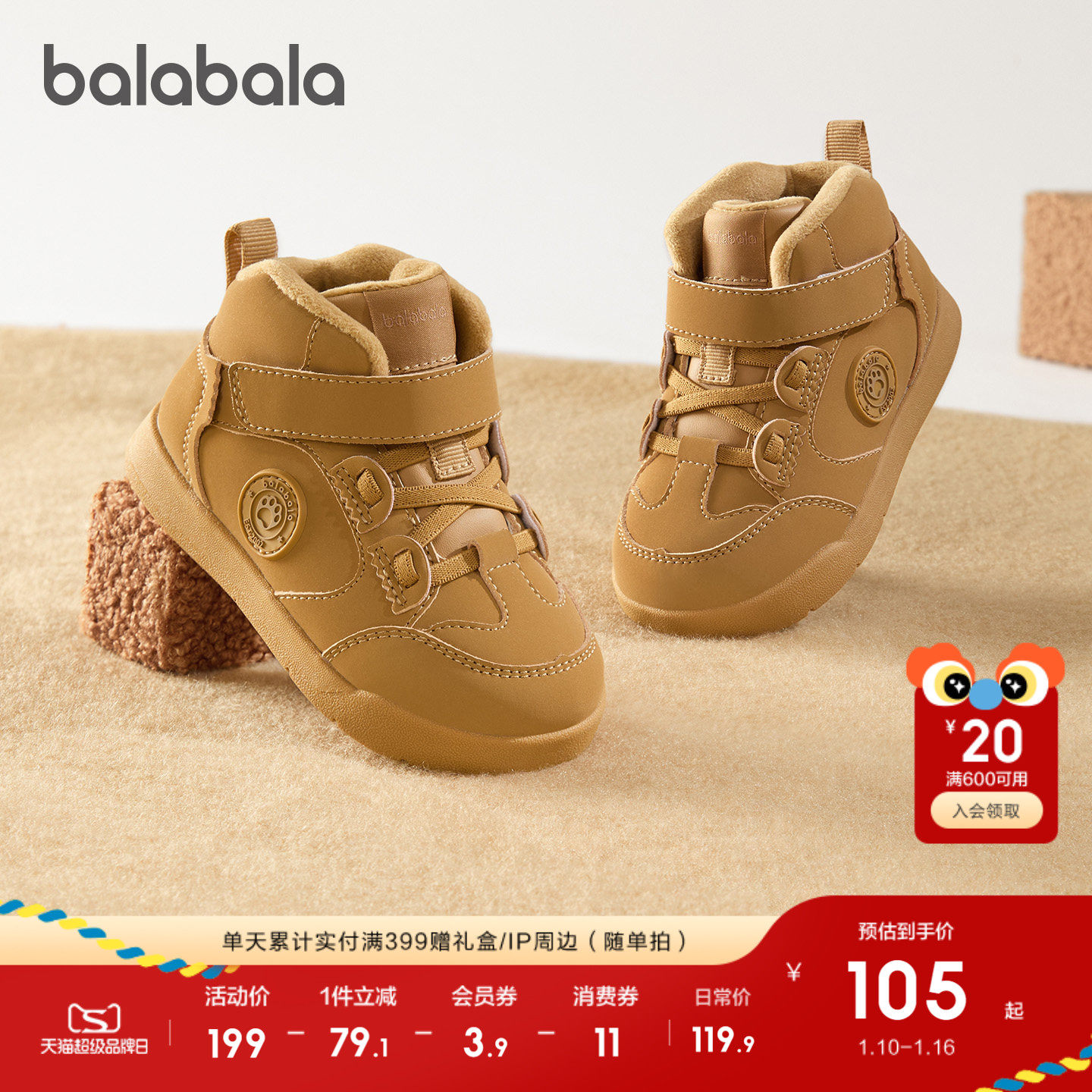 巴拉巴拉童鞋儿童板鞋男女童学步鞋鞋子2025新款秋冬加绒