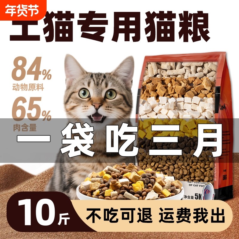猫粮10斤实惠装成猫冻干全价幼猫鲜肉营养流浪猫大袋通用2