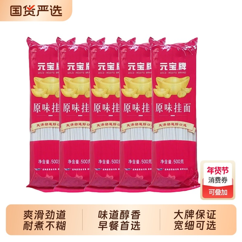 元宝挂面500g*5袋方便速食家用美食早餐手擀面汤面拌面