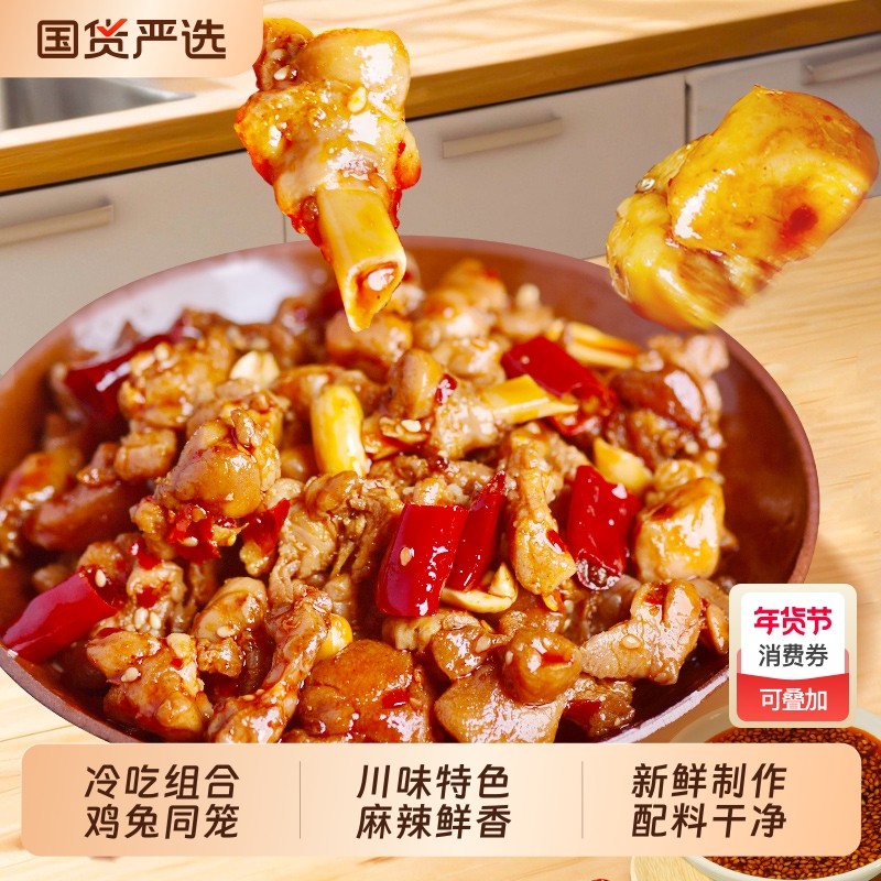 肖三婆鸡兔同笼冷吃鸡丁兔丁四川特色美食开袋即食夜宵追剧小
