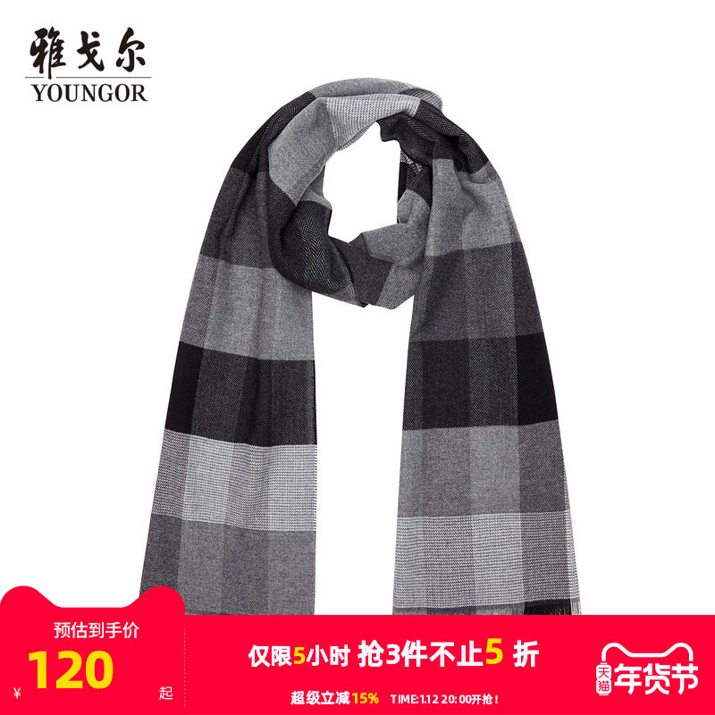 雅戈尔秋冬新品商务休闲男士轻薄羊毛保暖围巾格纹时尚潮流配